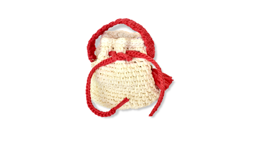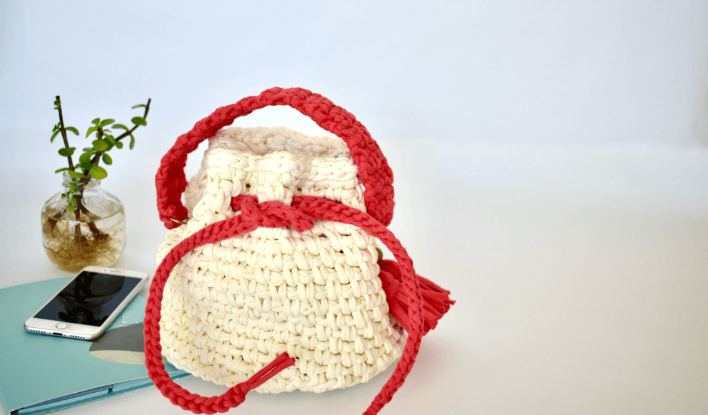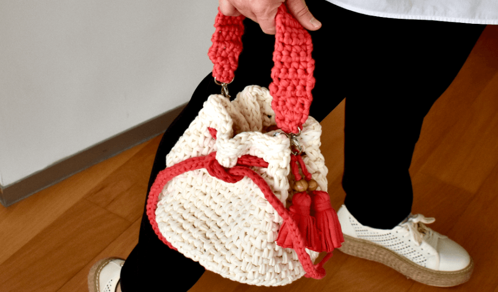 - Asa tejida de trapillo desmontable (con ganchos que se sujetan al cuerpo del bolso)