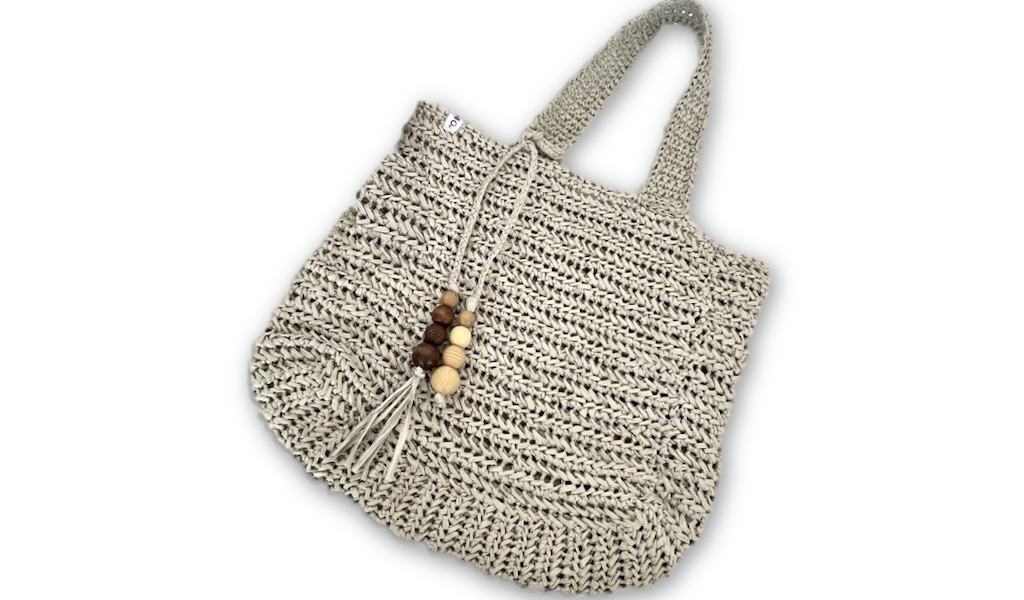- Accesorio decorativo con cuentas de madera (retirar antes de lavar la bolsa)