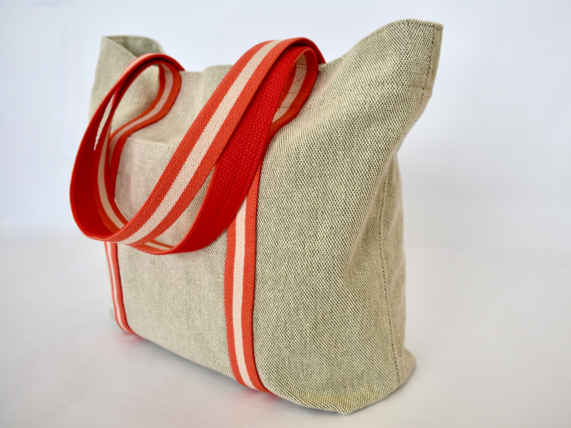 Bolso de gran sencillez… con cintas rojas, que dan un toque de color como las tejas a los edificios de esta ciudad californiana... Santa Barbara.